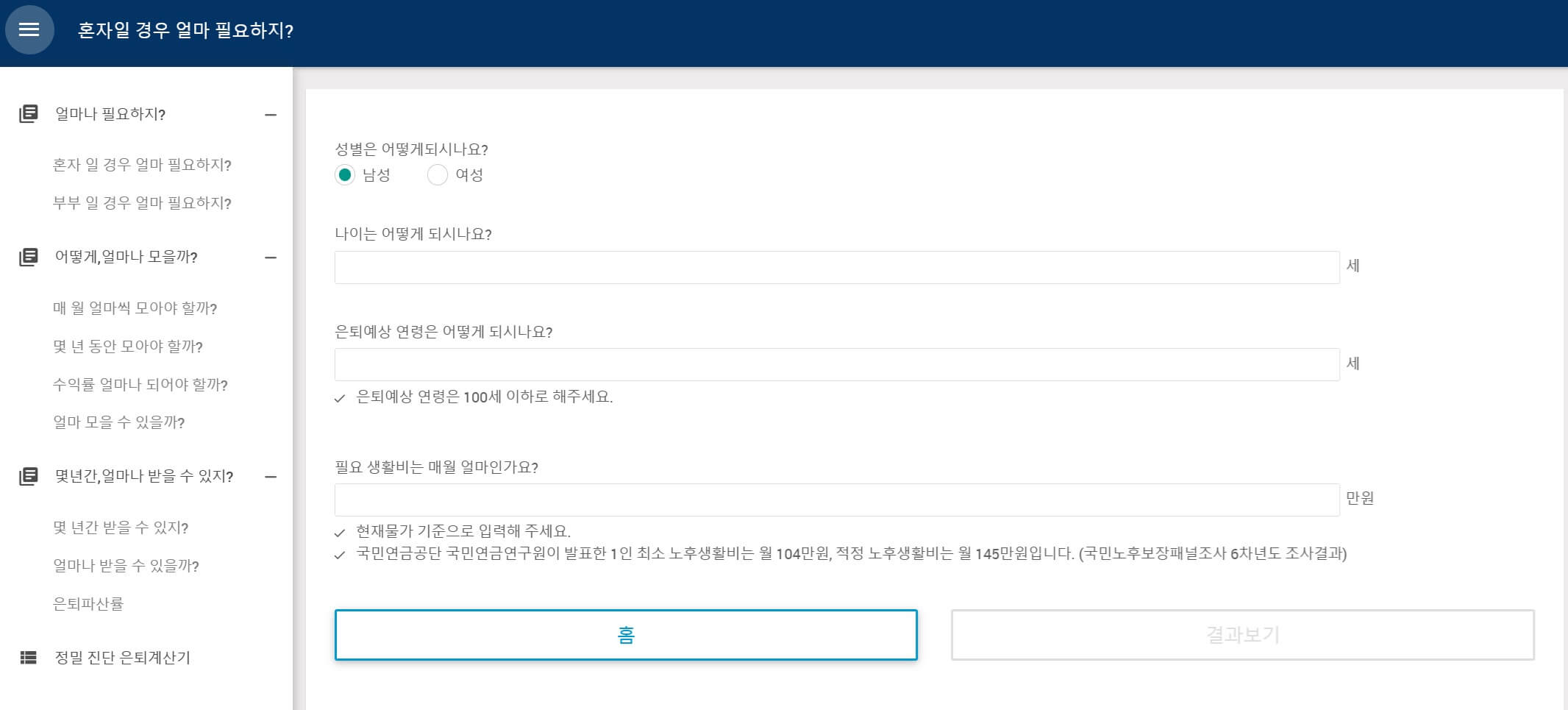 은퇴자금 계산기 바로가기